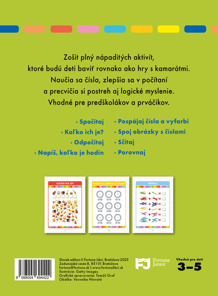 Zošit plný nápaditých aktivít, ktoré budú deti baviť rovnako ako hry s kamarátmi. Naučia sa čísla, zlepšia sa v počítaní a precvičia si postreh aj logické myslenie. Vhodné pre predškolákov a prváčikov.