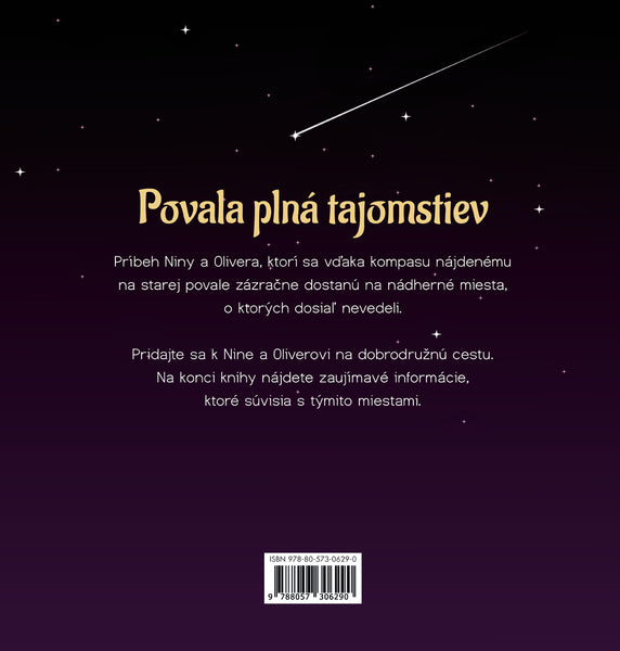 Príbeh Niny a Olivera, ktorí sa vďaka kompasu nájdenému na starej povale zázračne dostanú na nádherné miesta, o ktorých dosiaľ nevedeli. Pridajte sa k Nine a Oliverovi na dobrodružnú cestu. Na konci knihy nájdete zaujímavé informácie, ktoré súvisia s týmito miestami.