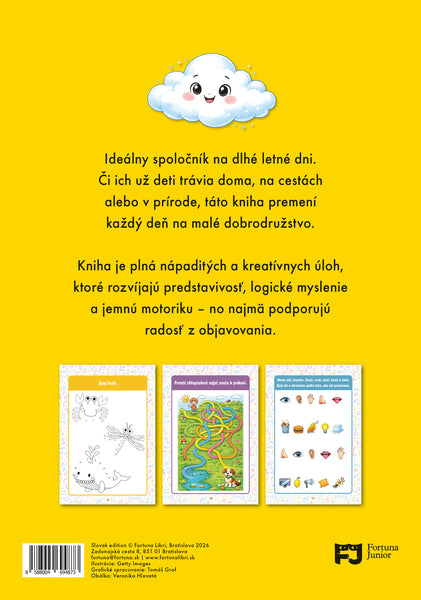 Ideálny spoločník na dlhé letné dni. Či ich už deti trávia doma, na cestách alebo v prírode, táto kniha premení každý deň na malé dobrodružstvo. Kniha je plná nápaditých a kreatívnych úloh, ktoré rozvíjajú predstavivosť, logické myslenie a jemnú motoriku – no najmä podporujú radosť z objavovania.